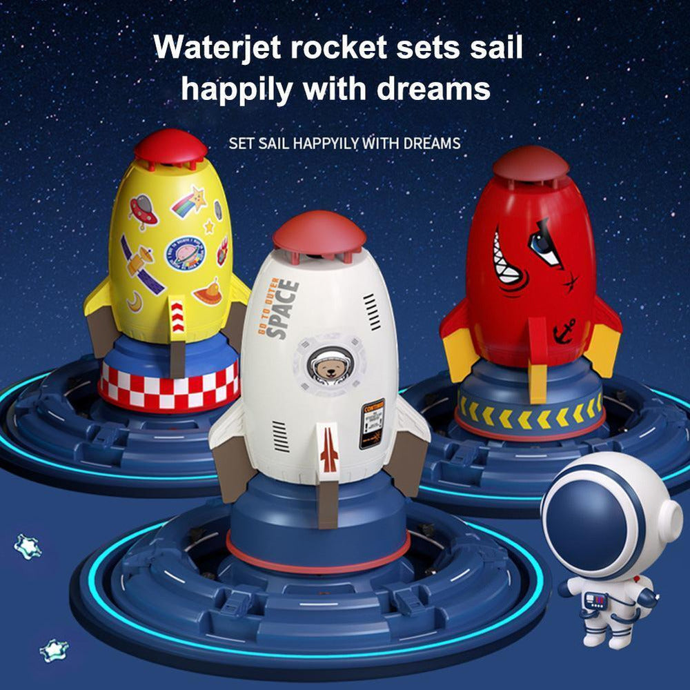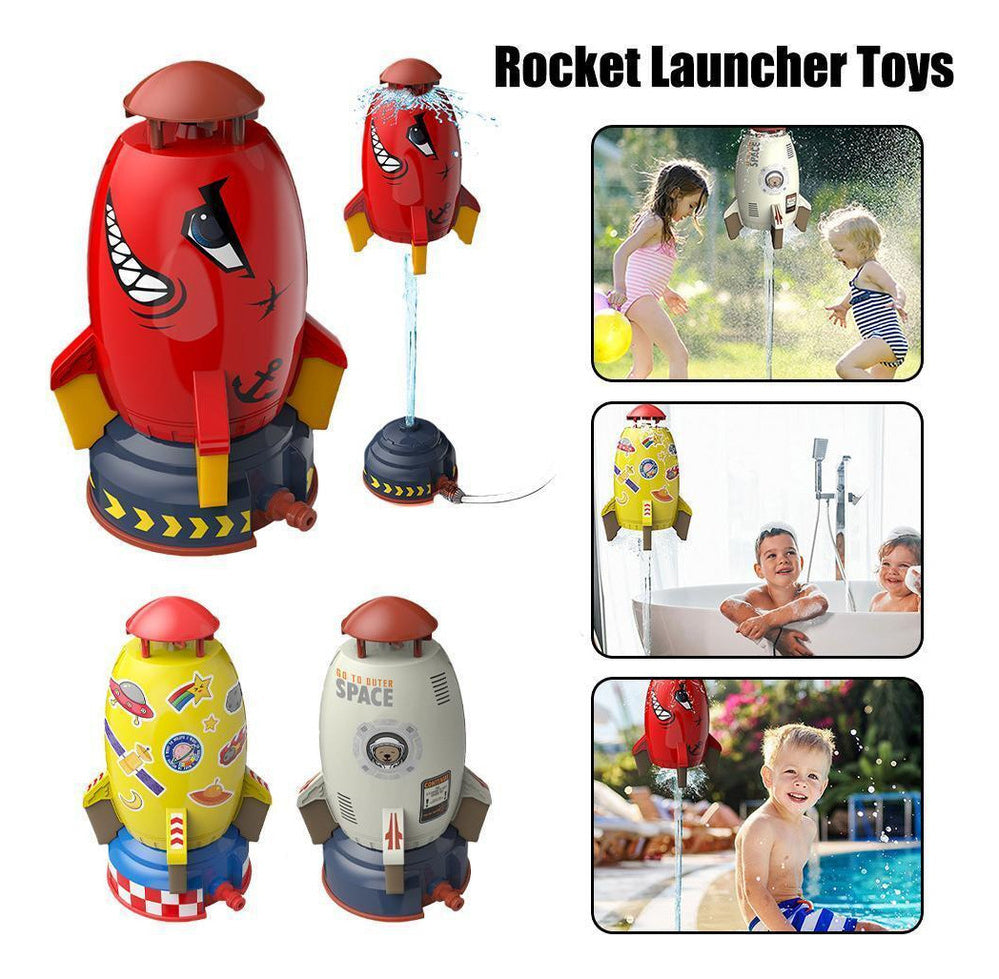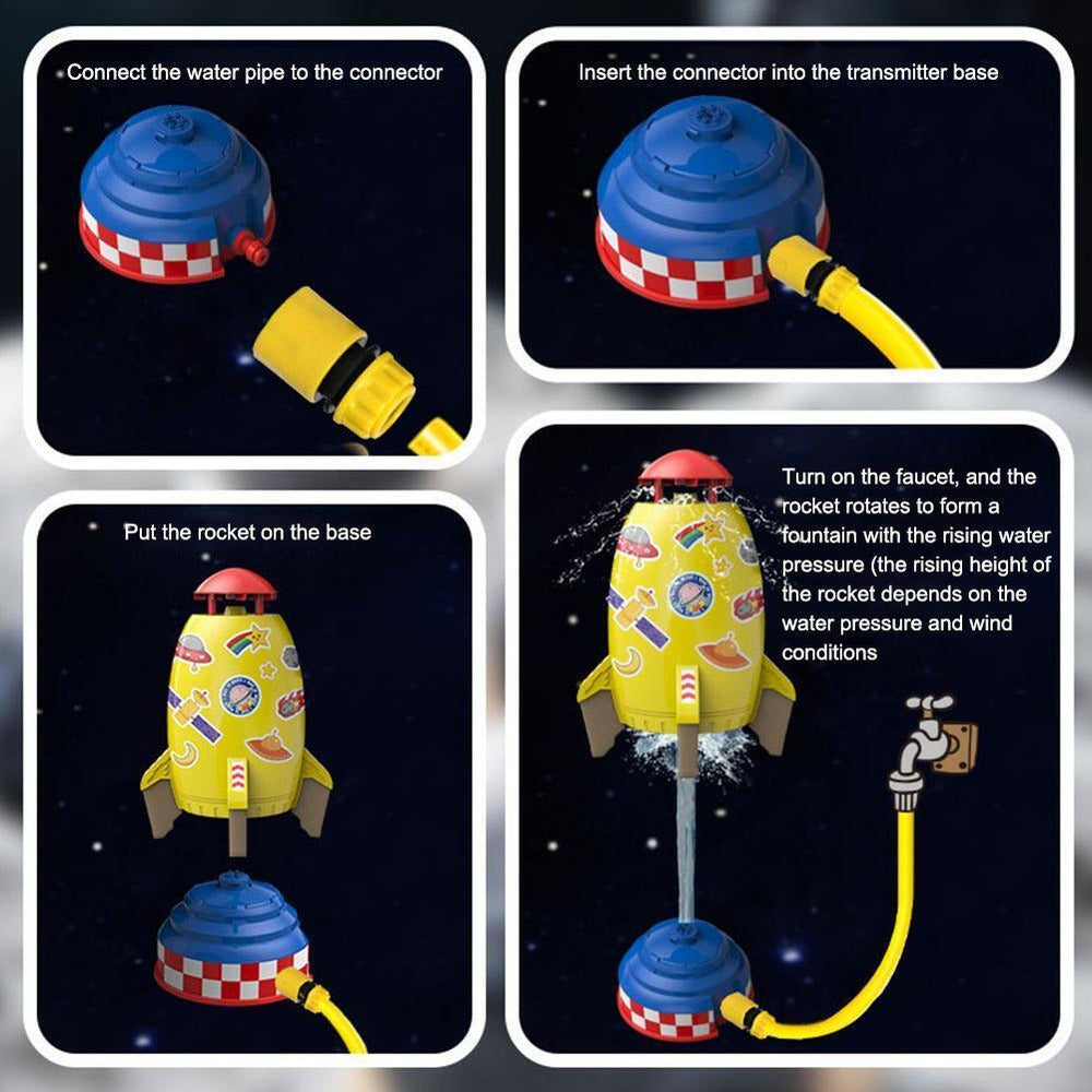 Decole e refresque-se com nosso exclusivo pulverizador de água. Conecte uma mangueira de jardim ao controlador de empuxo para levantar e equilibrar o foguete em um fluxo de água. Quando o foguete estiver equilibrado exatamente onde você deseja, a água fluirá para fora do cone frontal para encharcar aqueles que ousarem passar por baixo.